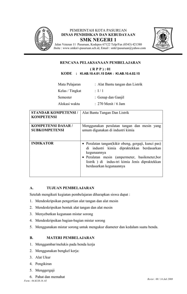 04 1802 rpp alat bantu tangan dan listrik01 | PDF