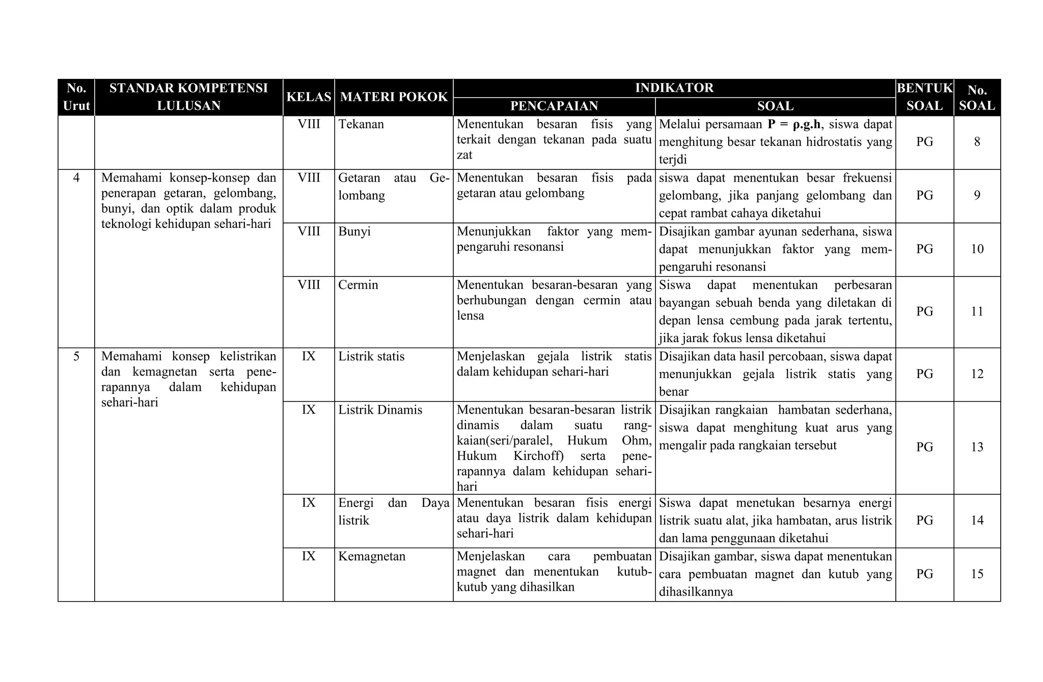 Rancangan penilaian IPA - Fisika- SMP Kelas 7 Semester 1 | DOC
