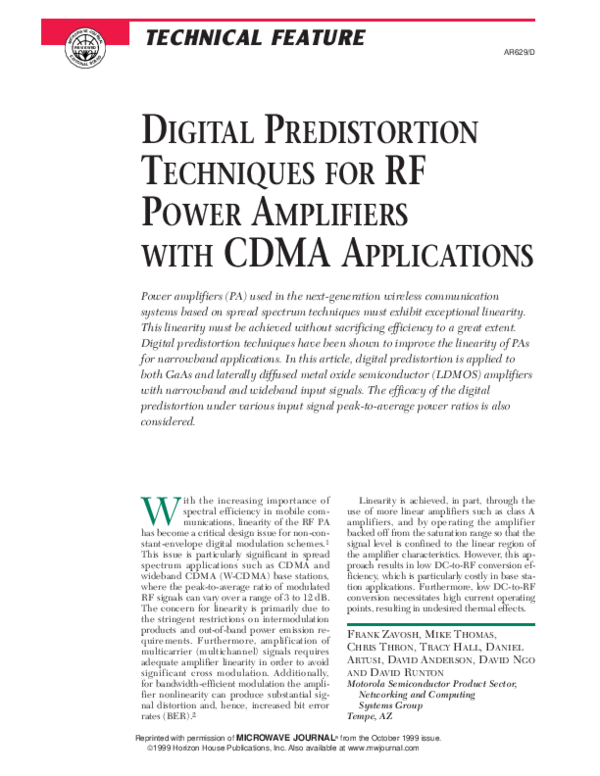 (PDF) Digital predistortion techniques for RF power amplifiers with ...