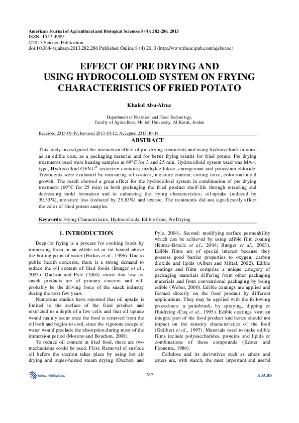 (PDF) Effect of Pre Drying and Using Hydrocolloid System on Frying ...