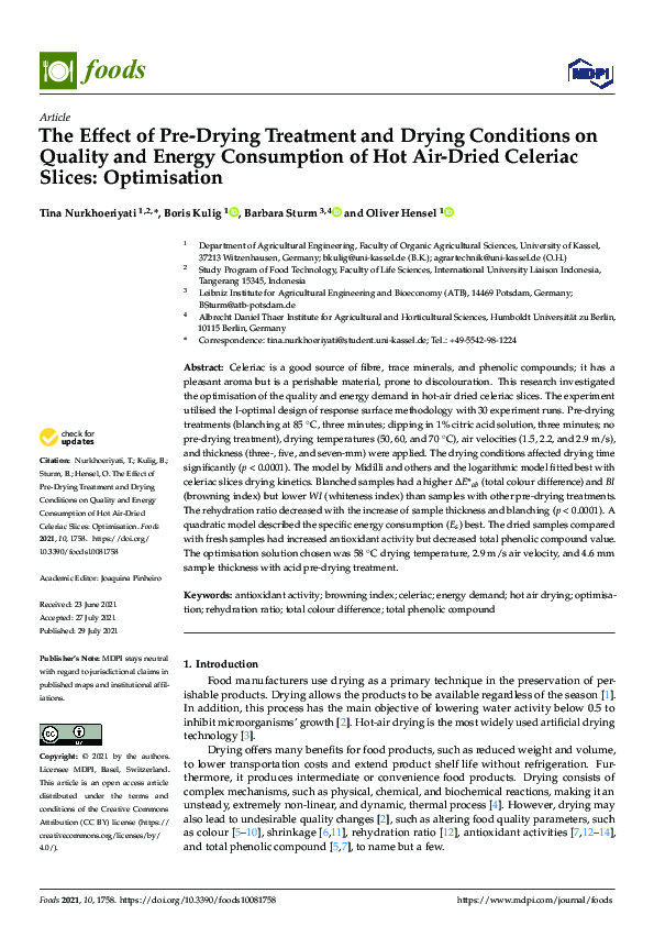 (PDF) The Effect of Pre-Drying Treatment and Drying Conditions on ...