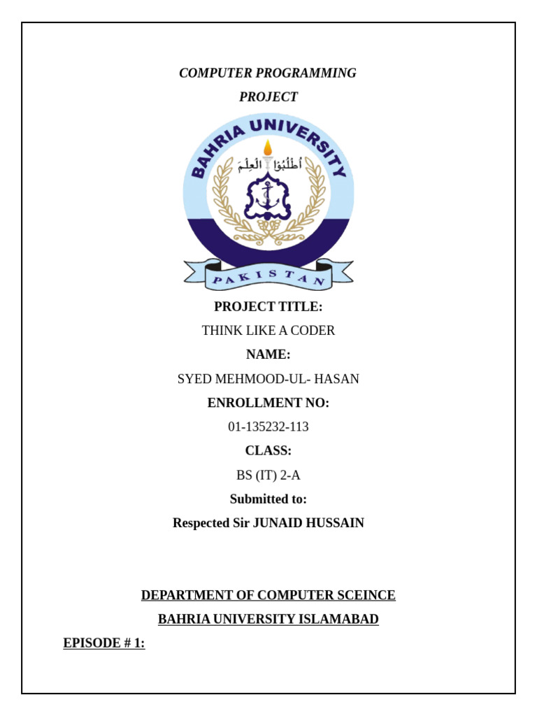 Introduction to Computer Programming Project | SETK1533 - Introduction ...