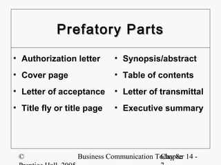 Prefatory parts of reports.ppt - FORMAL REPORTS PREFATORY COMPONENTS ...