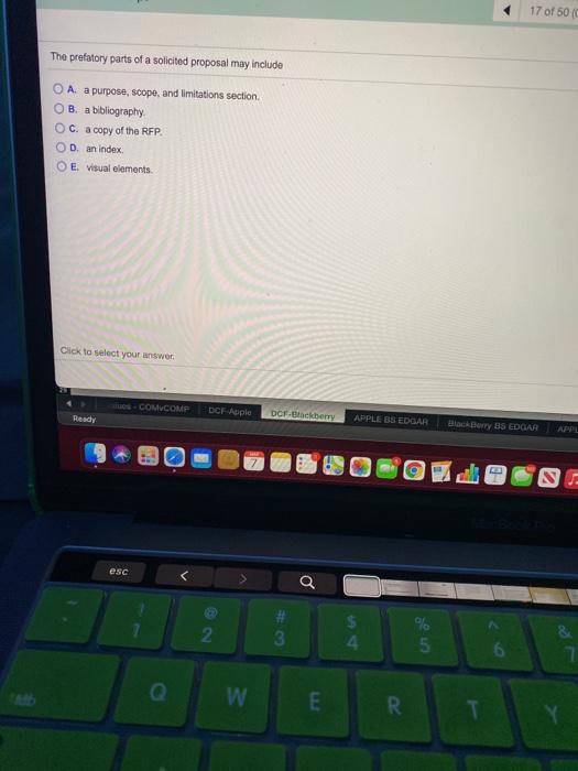 Solved 17 of 50 The prefatory parts of a solicited proposal | Chegg.com