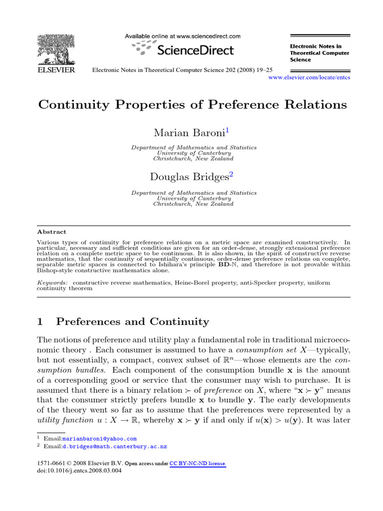 (PDF) Continuity Properties of Preference Relations