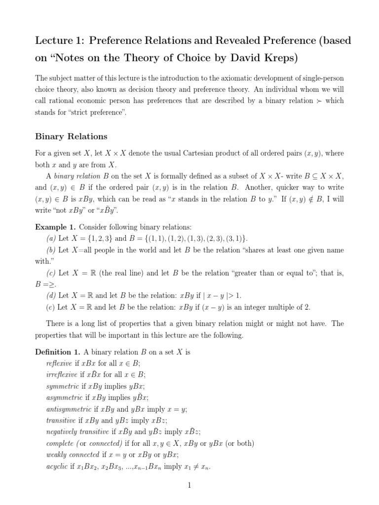 1) Binary Relations & Preference Relations | PDF | Theory ...