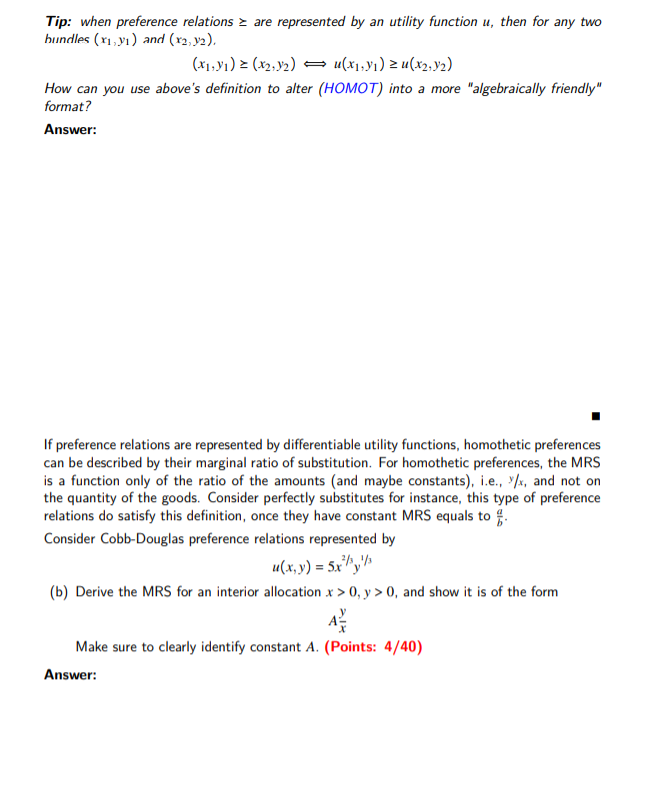1. A very important class of preference relations is | Chegg.com