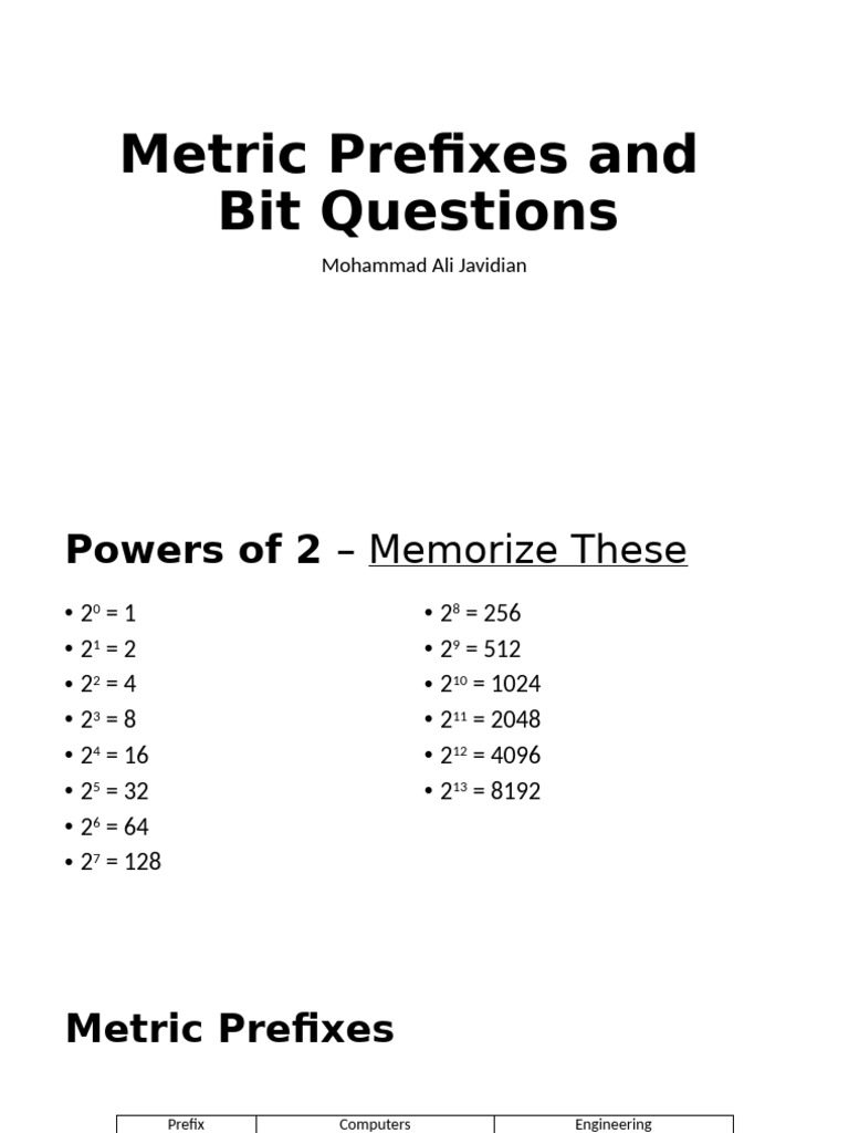 Ch1 Metric Prefixes Bit Questions | PDF | Integer (Computer Science ...
