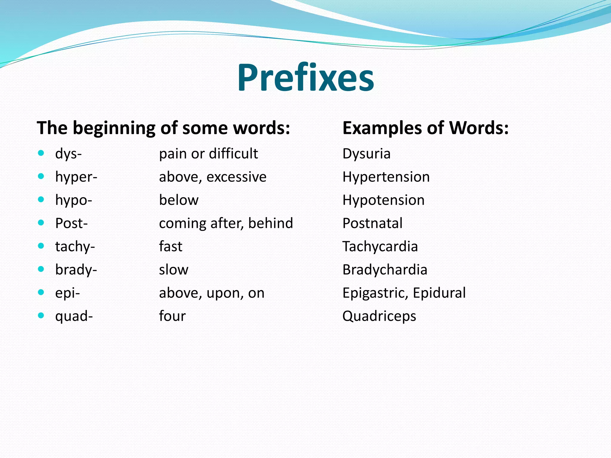 Medical Terminology Examples Prefixes at Conrad Williams blog