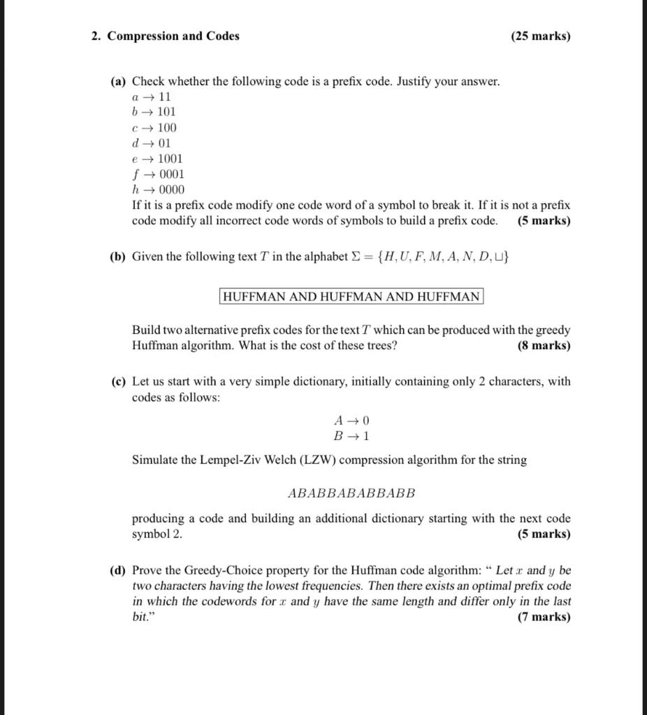 Solved 2. Compression and Codes (25 marks) (a) Check whether | Chegg.com