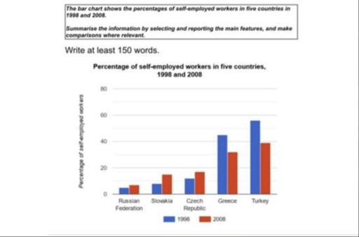 Band 4: The bar chart shows the percentages of self-employed workers in ...