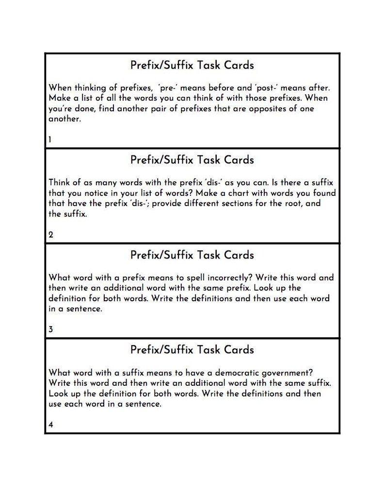 Affixes Task Cards for Prefixes and Suffixes | Made By Teachers
