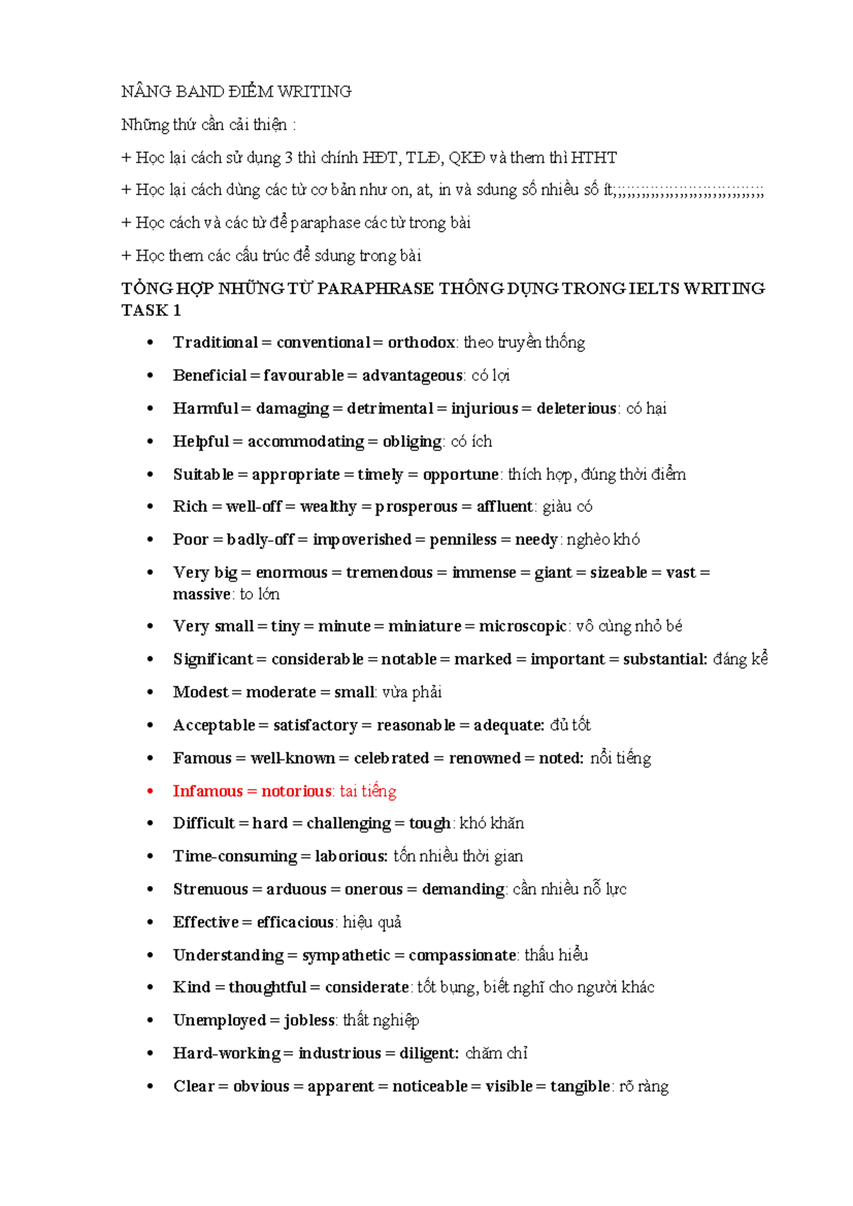NÂNG BAND ĐIỂM WRITING - BÀI TẬP IELTS WRITING TASK 1 - Studocu