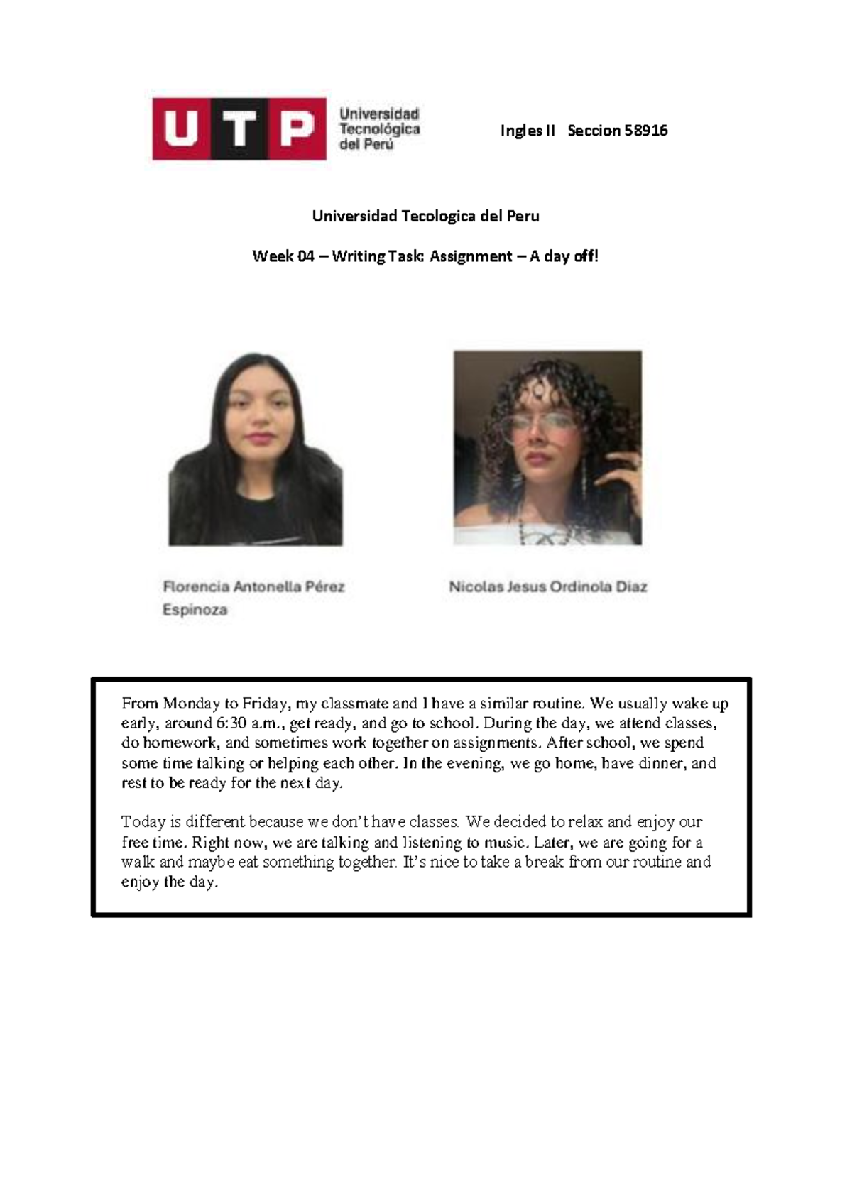 Ingles II Seccion 58916: Week 04 Writing Task - A Day Off! - Studocu