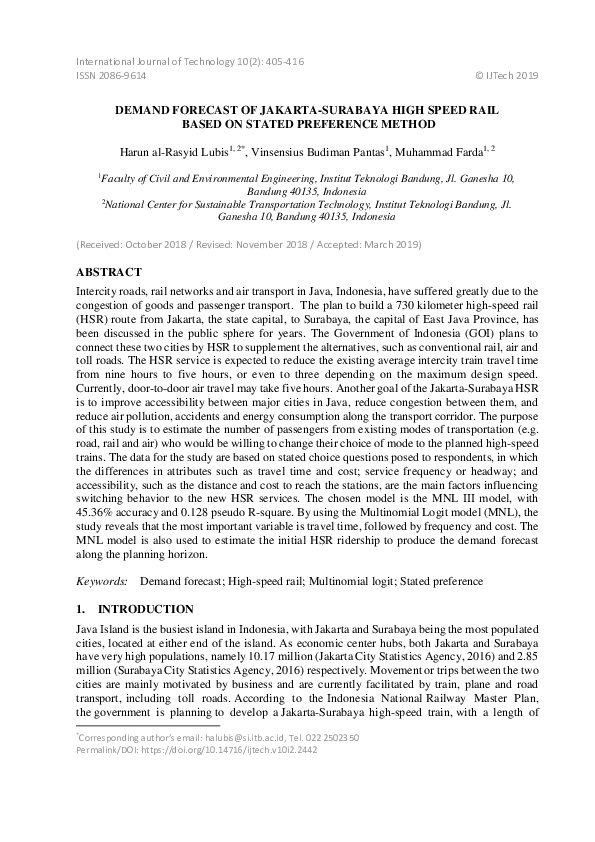 (PDF) Demand Forecast of Jakarta-Surabaya High Speed Rail based on ...