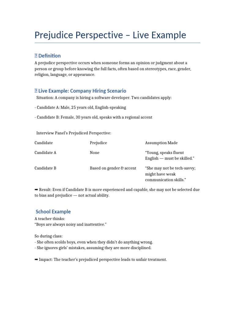 Prejudice Perspective Live Example | PDF