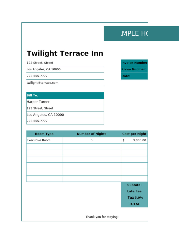 Sample Hotel Invoice Template – PreWrite