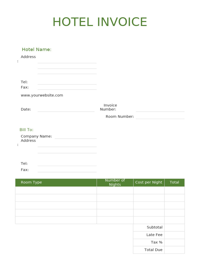 Free Printable Hotel Invoice Template