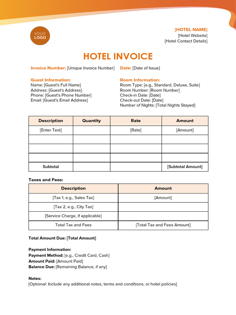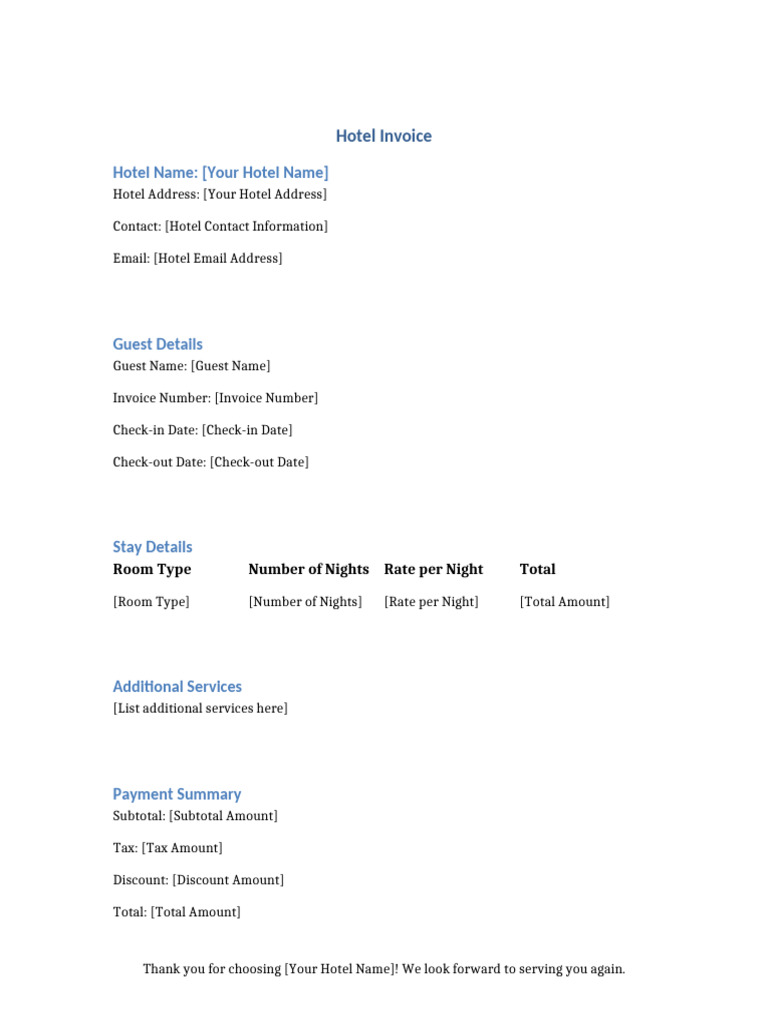 Free Hotel Invoice Template - PDF | Word – eForms