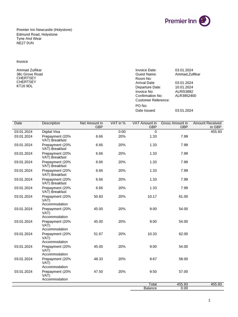 Premier Inn | PDF | Taxes | Payments