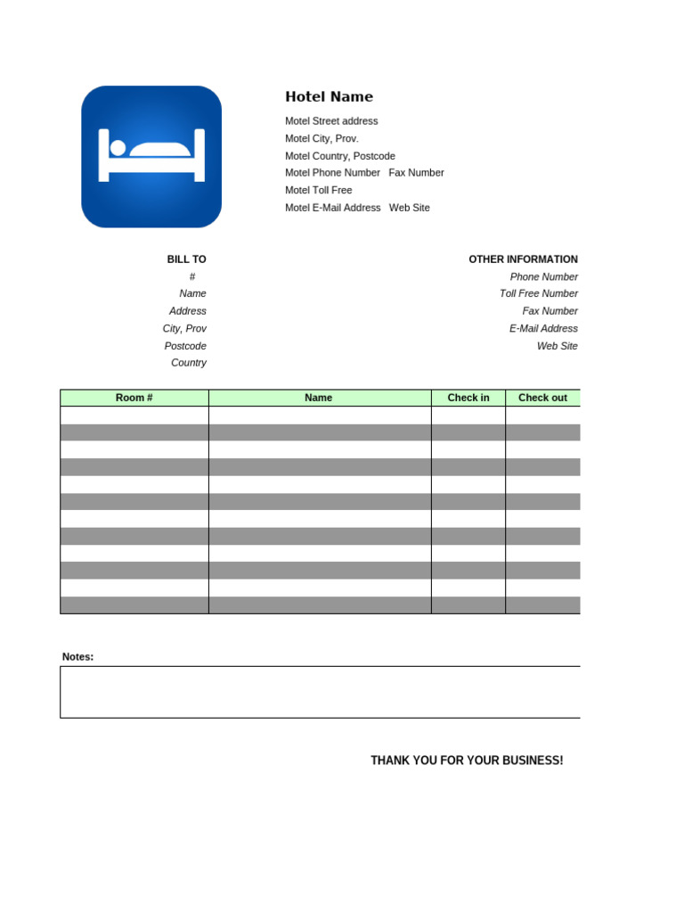 Hotel Invoice Template for EXCEL | Word & Excel Templates
