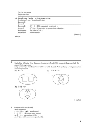 Selesai:Rajah 8 menunjukkan suatu hujah deduktif yang separa lengkap ...