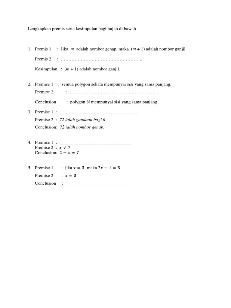 Lengkapkan Premis Serta Kesimpulan Bagi Hujah Di Bawah | PDF