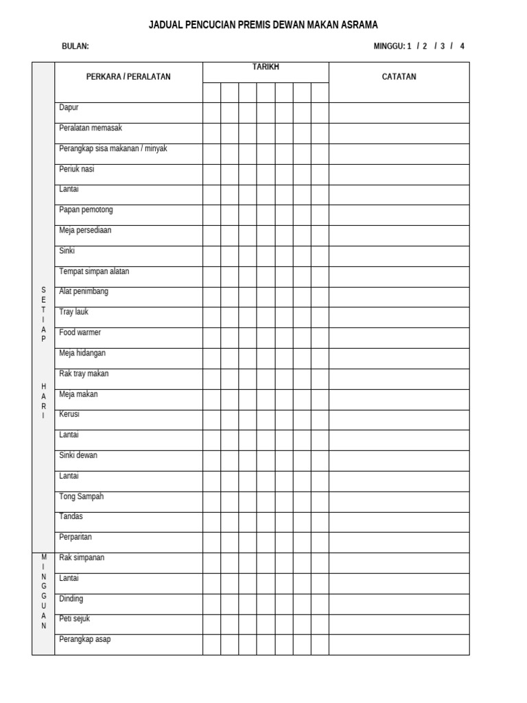 Jadual Pembersihan Dewan Makan Asrama | PDF