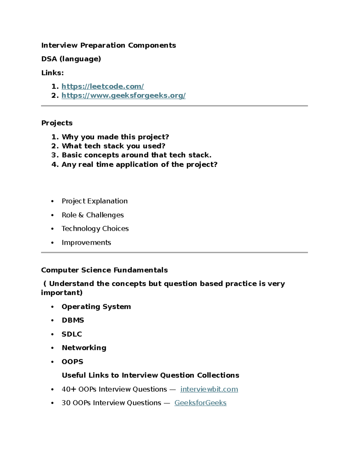 Interview Prep Components for DSA: Key Topics & Resources - Studocu