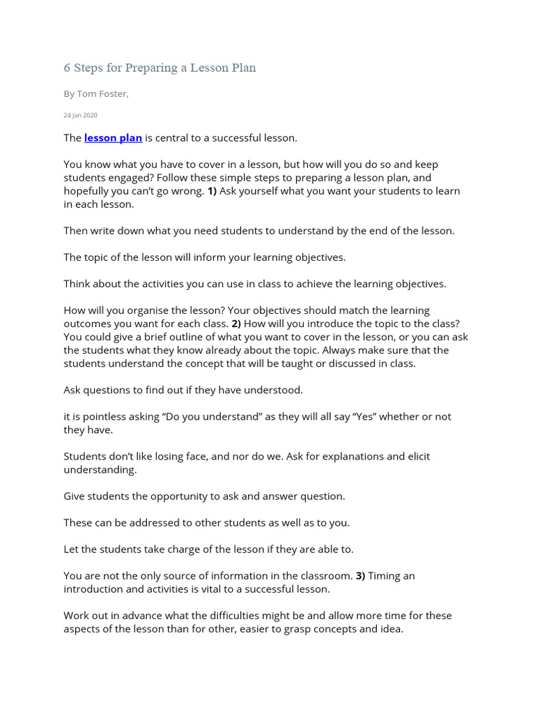 6 Steps For Preparing A Lesson Plan | PDF | Lesson Plan | Learning