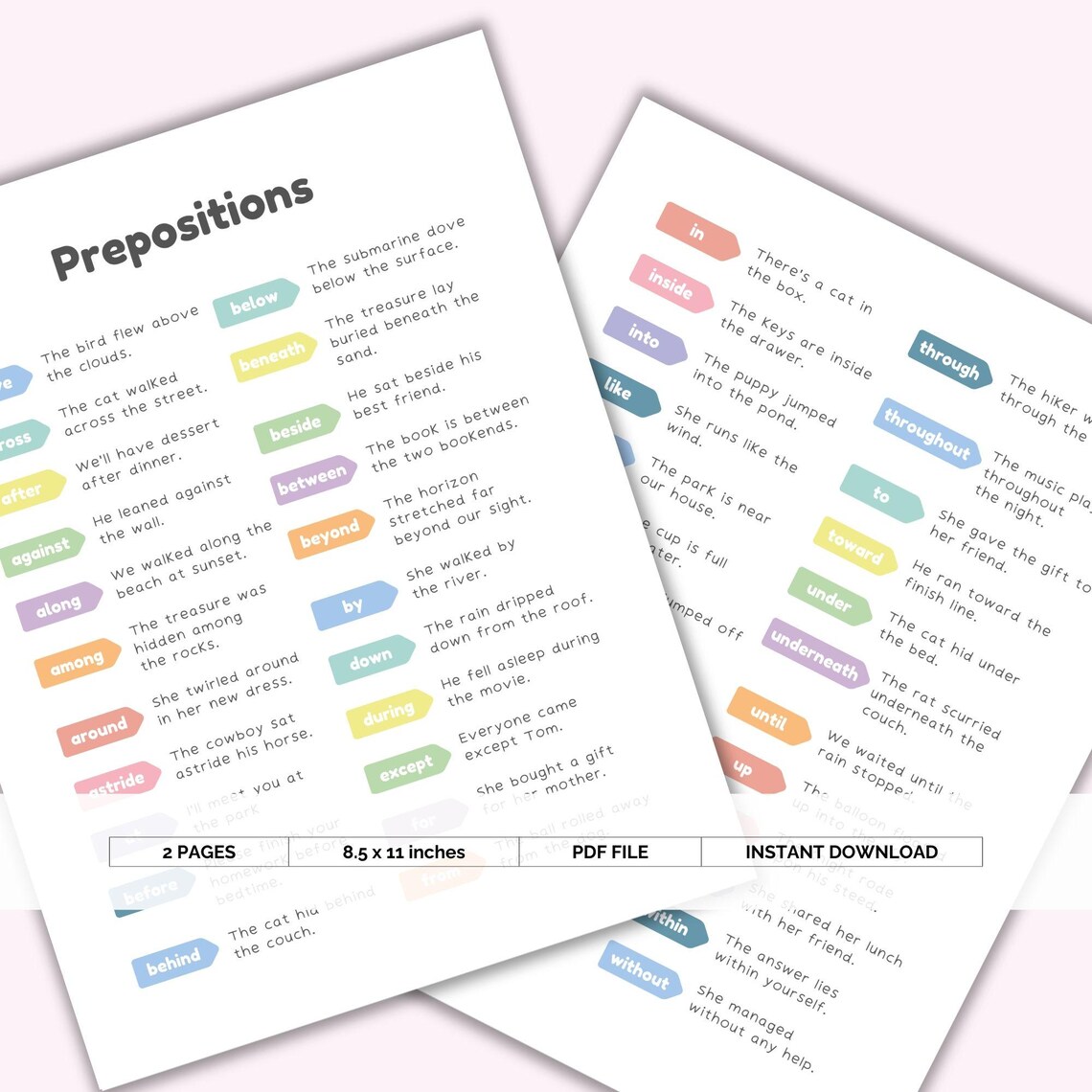 Prepositions List Printable | Color PDF | English Grammar Reference ...