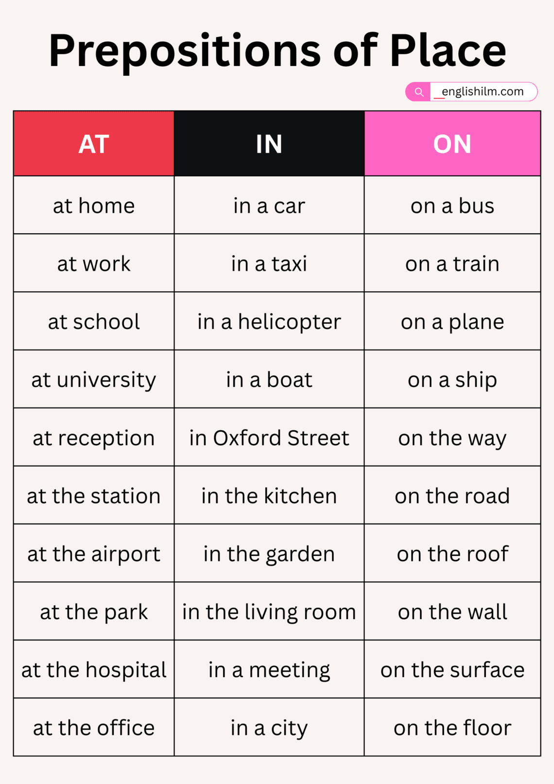 Learn how to use Prepositions of Place IN-ON-AT correctly in English ...
