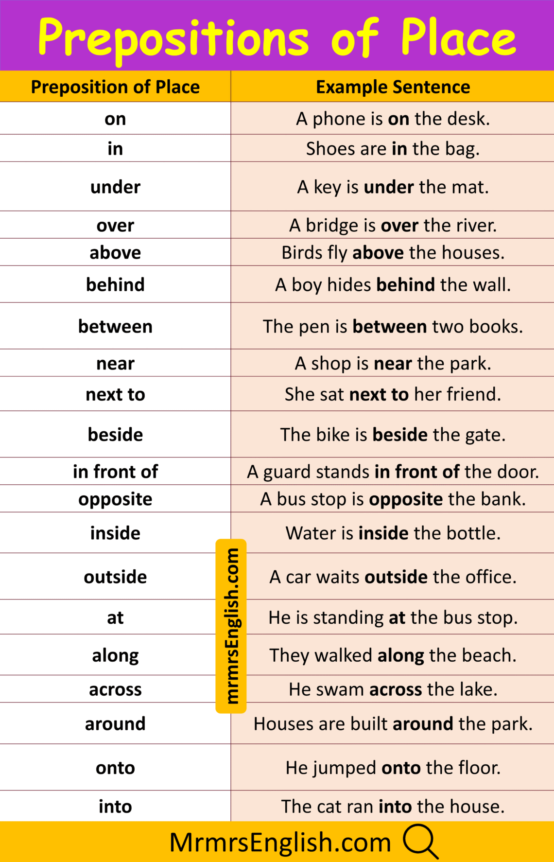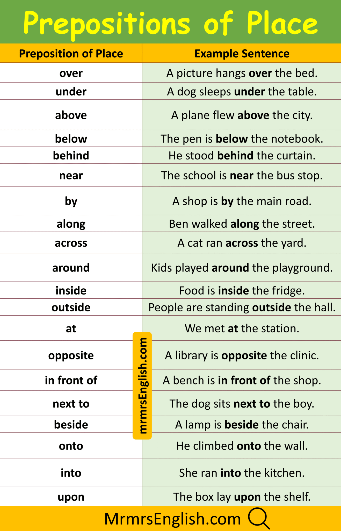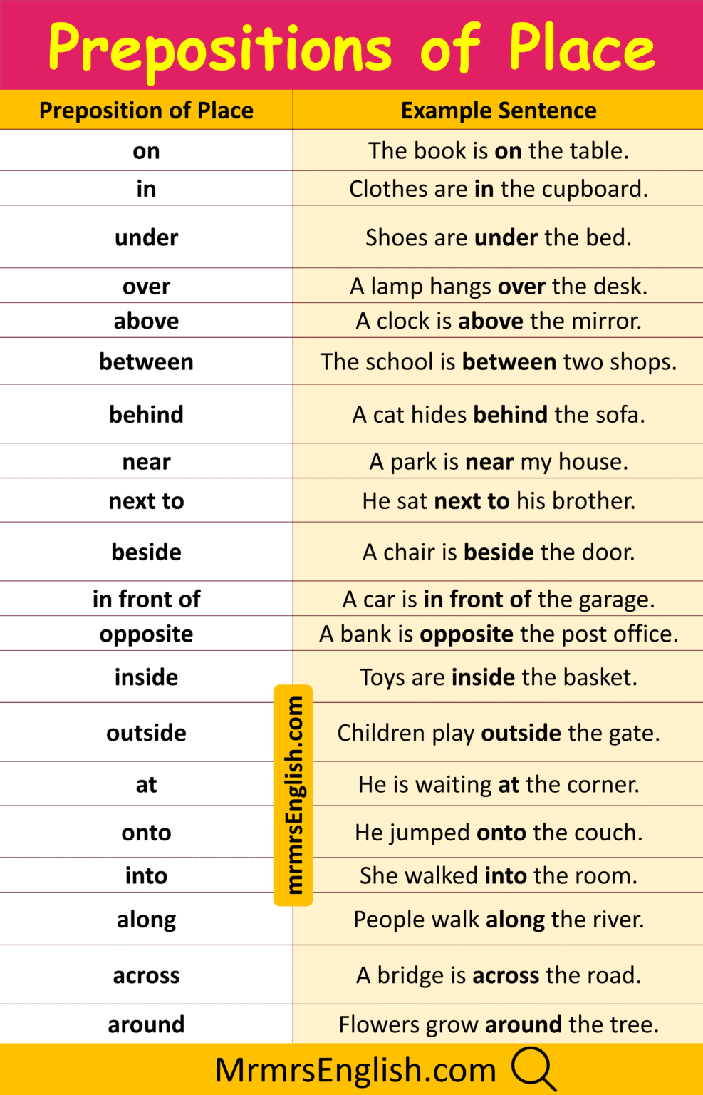 Prepositions of Place Examples Sentences In English with Pictures - MR ...