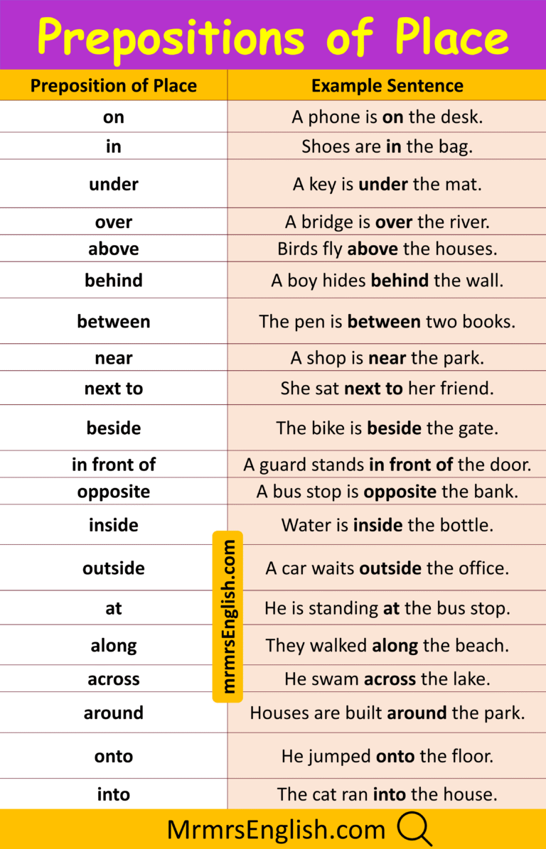 What is a Preposition of Place? (Definition, Examples, List) | GrammarBrain