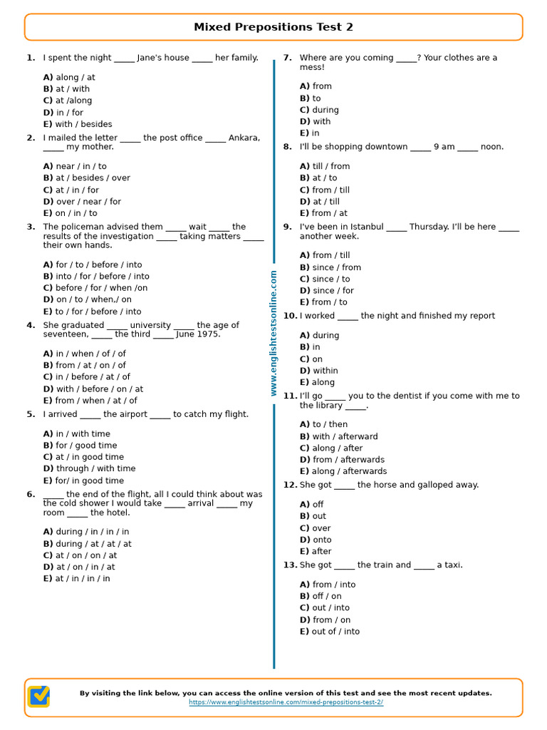 Online Test Of Preposition at Helene Winkleman blog