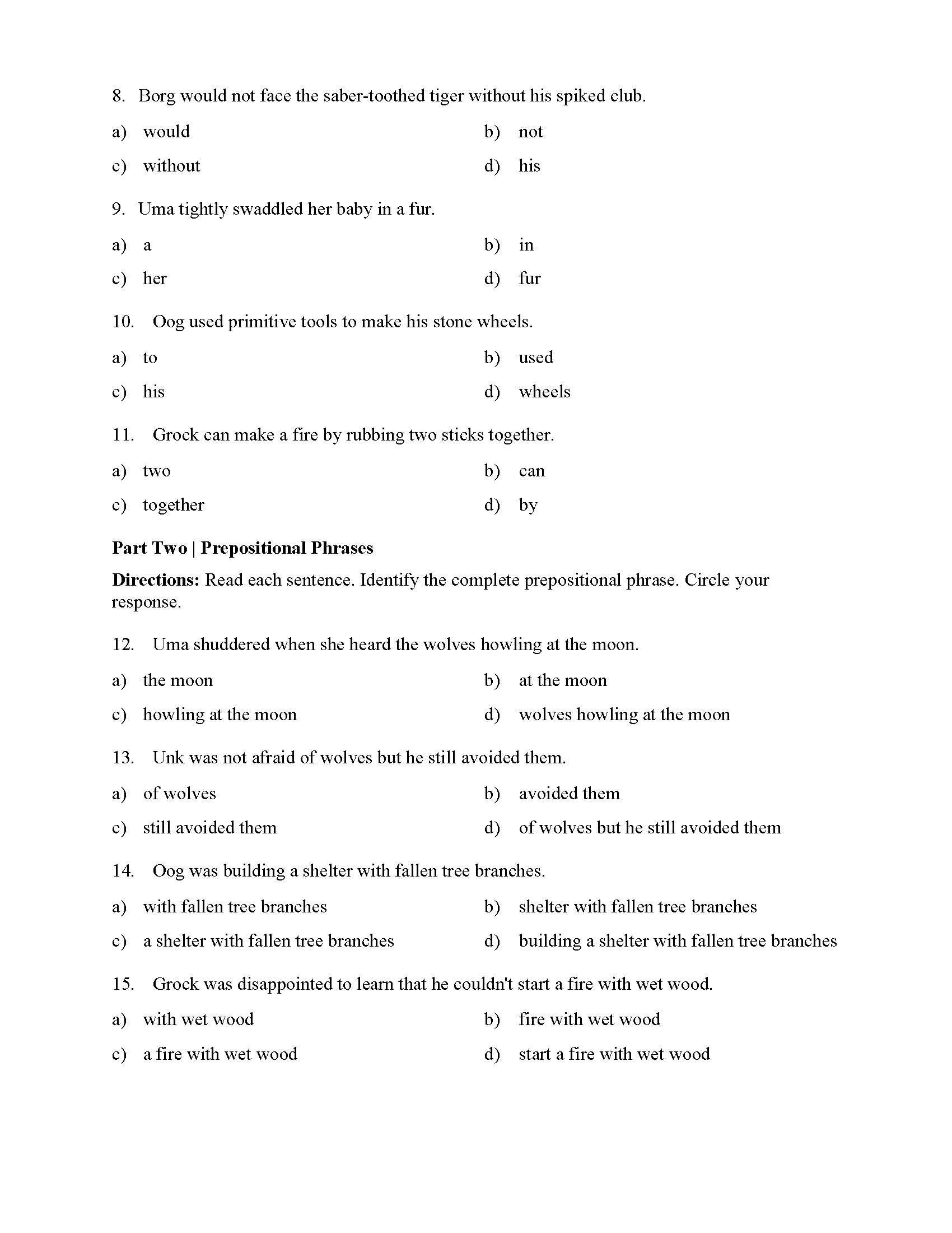 Prepositional Phrases Worksheet Answers