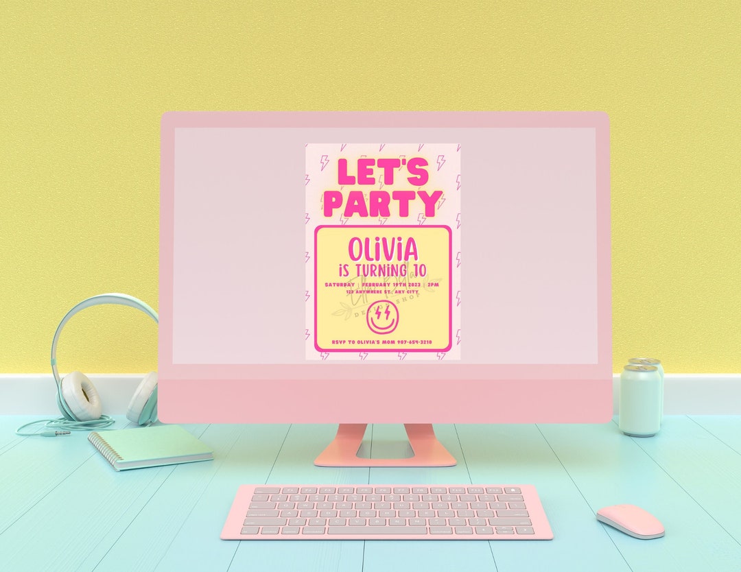 Preppy Let's Party Smiley Face Birthday Invitation Printable, Editable ...