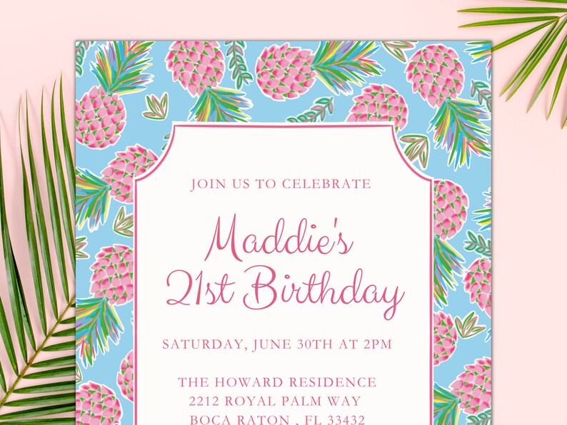 Preppy Invitation Pineapple Invitation Pink Blue Tropical Pineapple ...