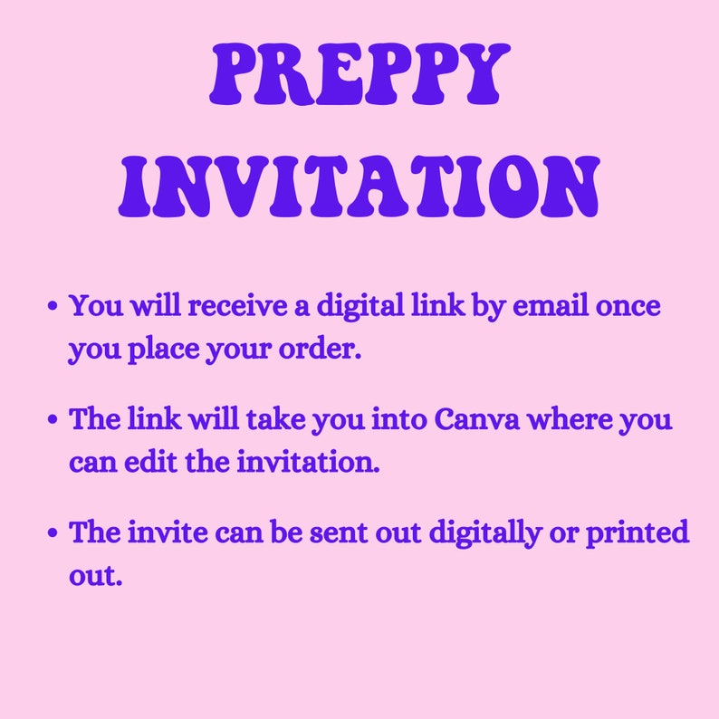 Preppy Pink Party Invitation Template Editable Canva Design Printable ...