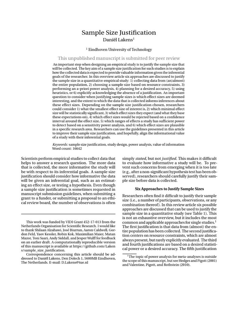 2021 - Lakens Preprint On Sample Size Justification | PDF | Type I And ...