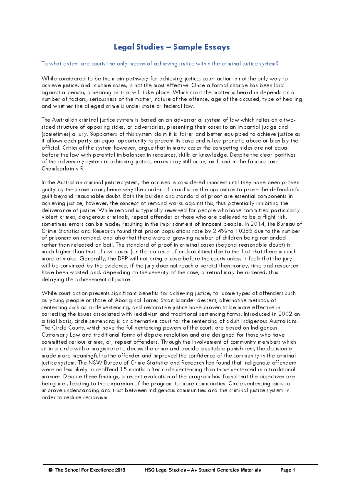HSC 2019 Legal Studies Sample Essays: Achieving Justice in the System ...