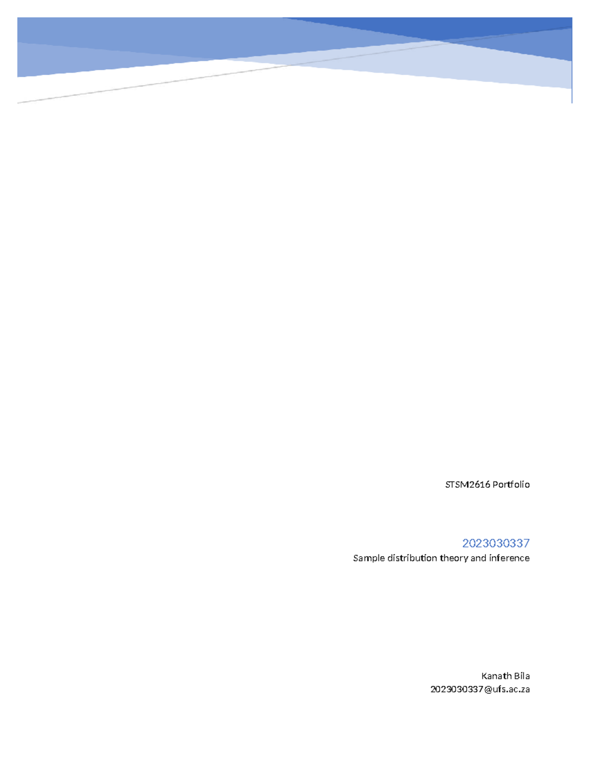STSM2616 Portfolio: Sample Distribution Theory & Inference - Studocu