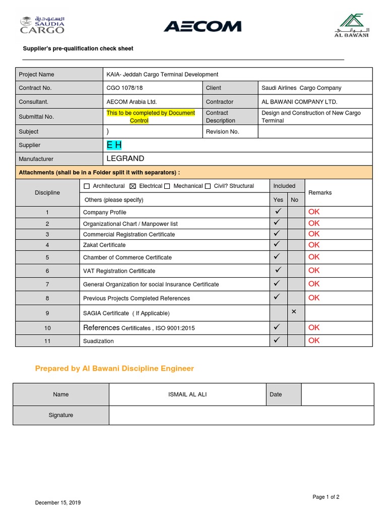 Pre-qualification CHECKLIST 1 | PDF