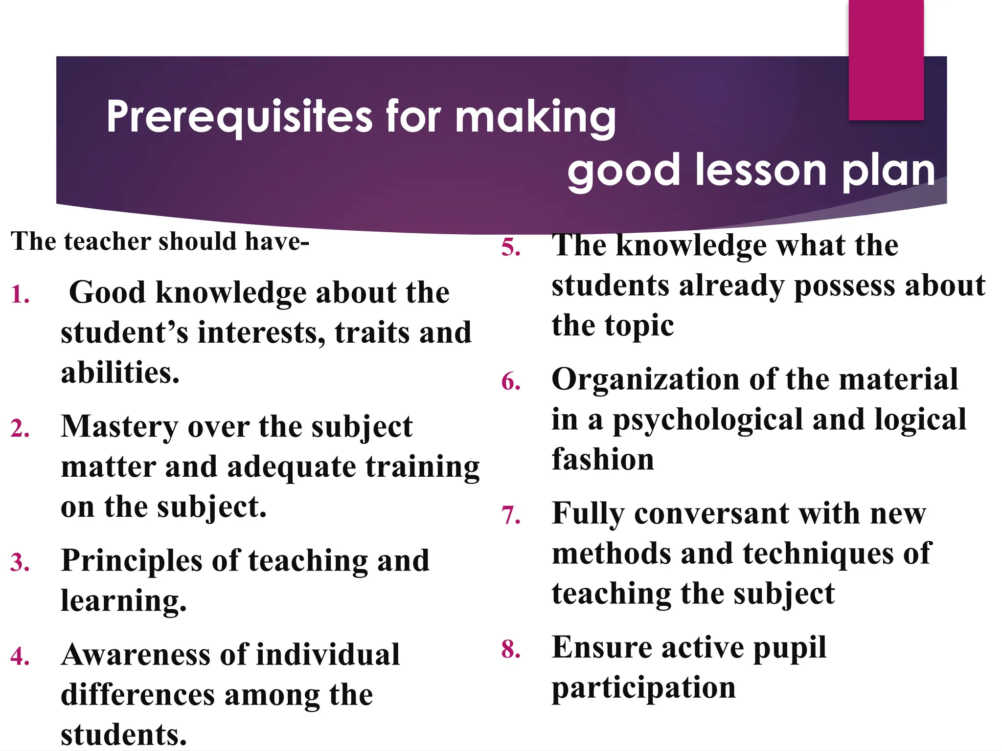Prerequisites of lesson plan (point 3-7) | what is lesson planning # ...