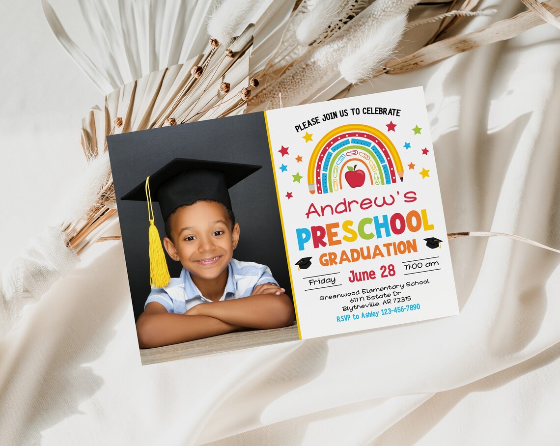 Preschool Graduation Invitation, School Rainbow Invitation, Preschool ...