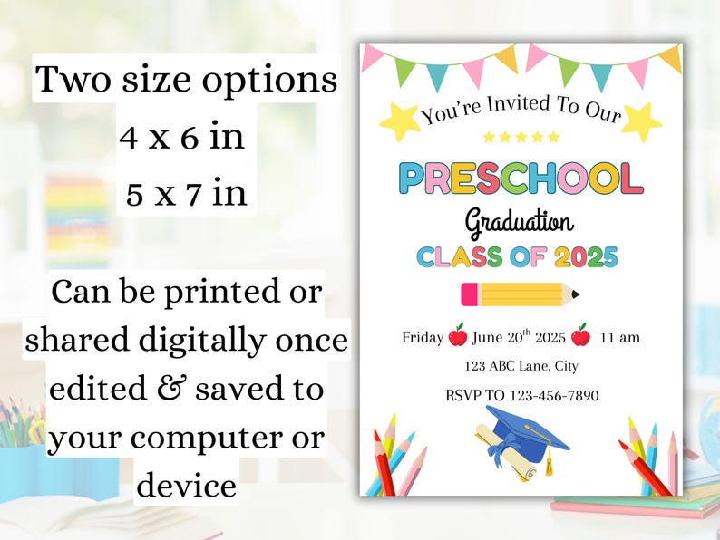 Editable Colorful Preschool Graduation Invitation 2025 + Digital Evite ...