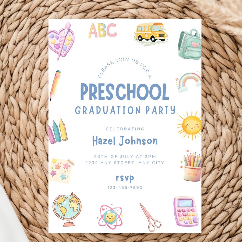 Preschool Graduation Invitation, Pre-K Graduation Celebration Party Invite