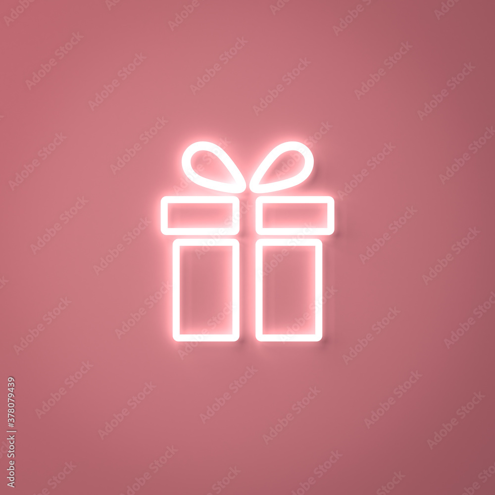 Neon light present box or gift icon on pink pastel color wall ...