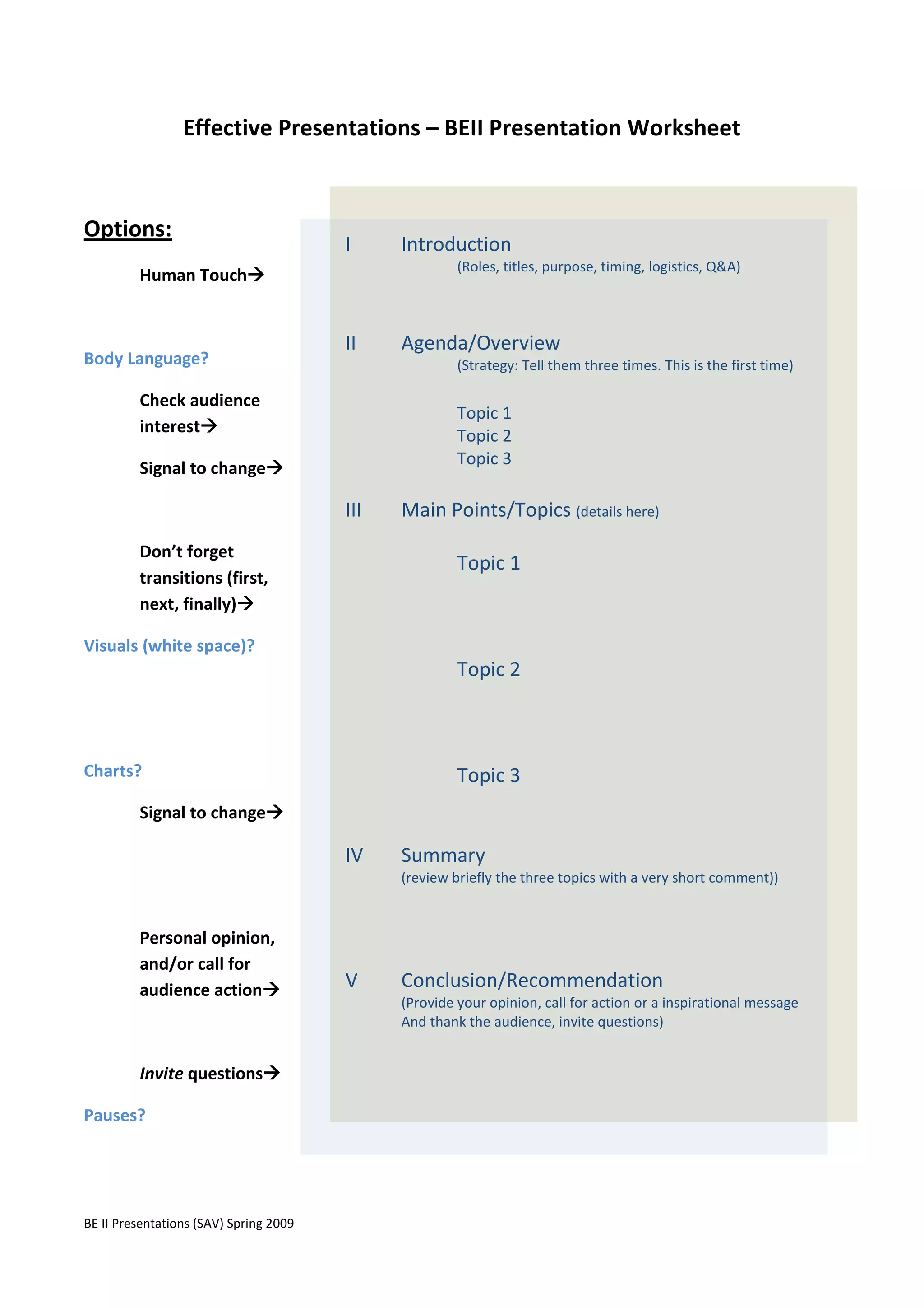Classic Presentation Structure [Effective Presentations] | DOCX