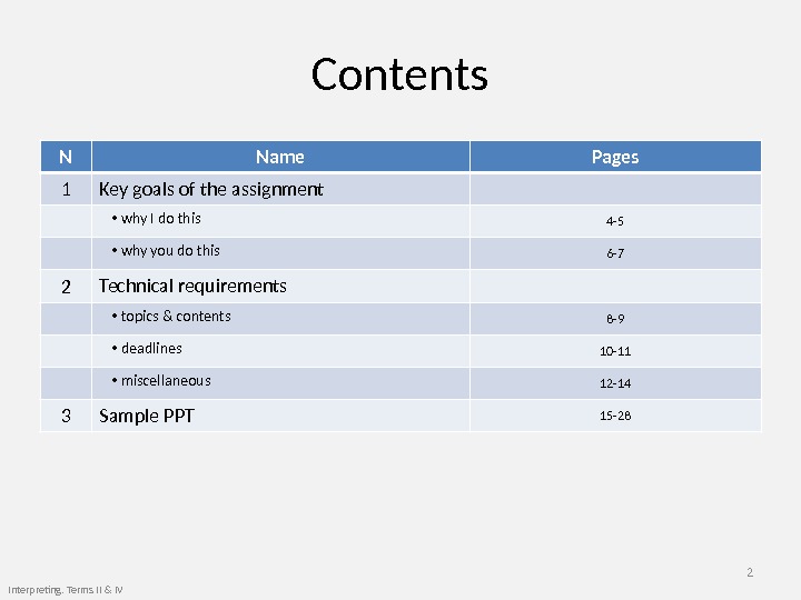 GUIDELINES FOR PPT DEVELOPMENT Interpreting. Terms II